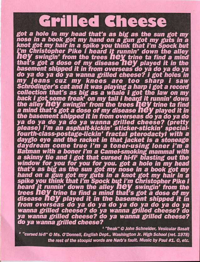 Do You Wanna Grilled Cheese? 7in by Boris the Sprinkler is licensed under a Creative Commons Attribution-Noncommercial-No Derivative Works 3.0 United States License.