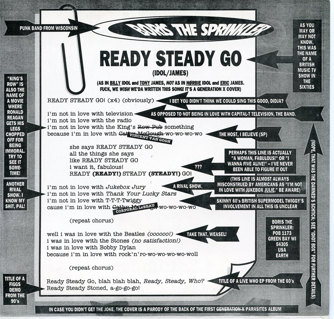 Ready Steady Go 7in by Boris the Sprinkler is licensed under a Creative Commons Attribution-Noncommercial-No Derivative Works 3.0 United States License.