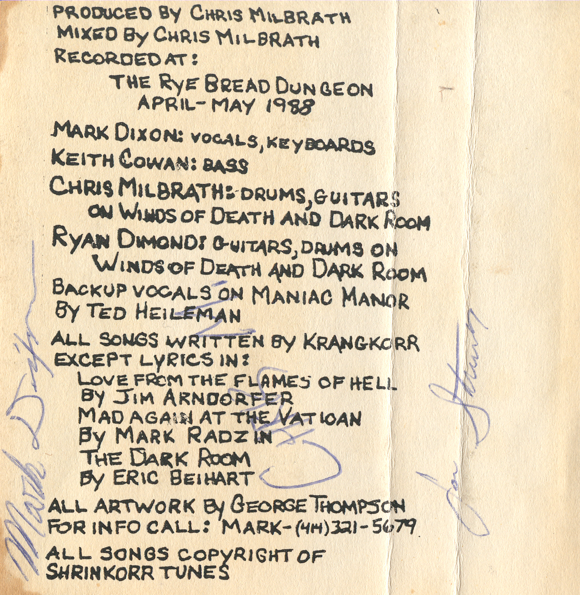 Recorded at The Rye Bread Dungeon, April–May 1988.