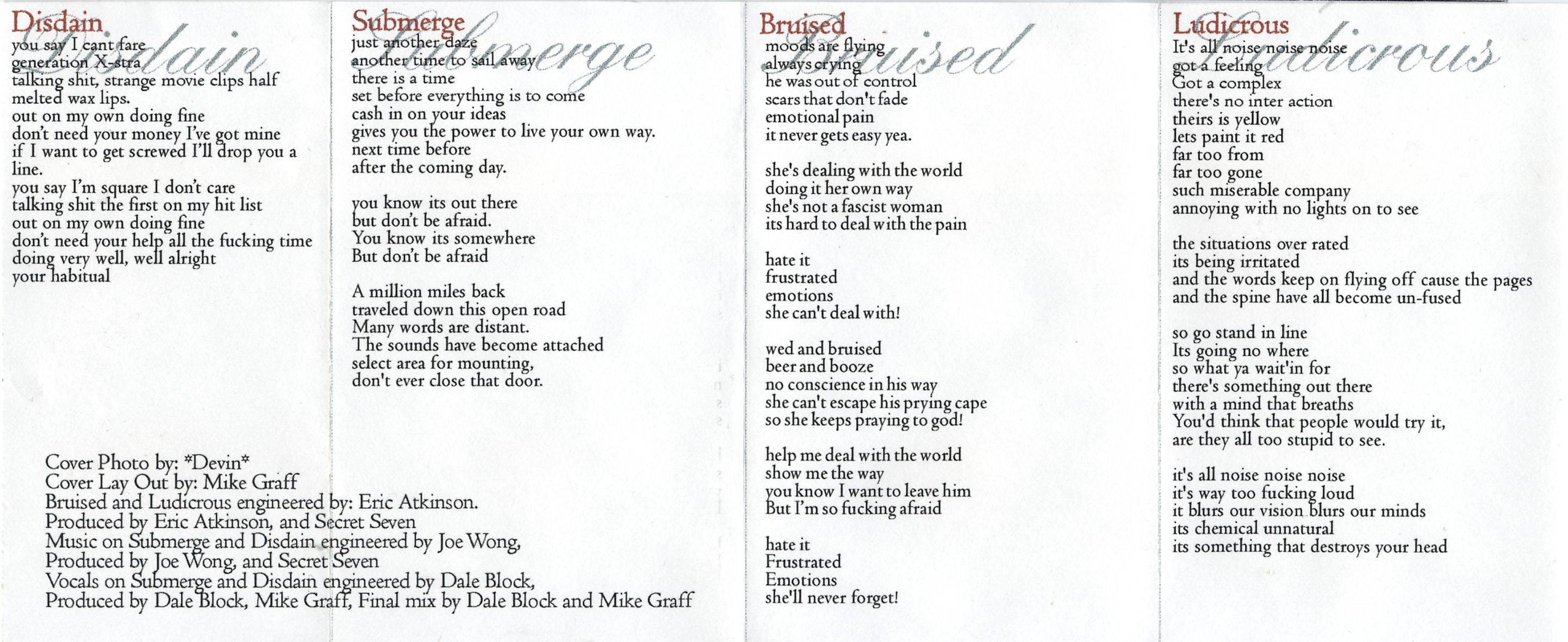 Tracks 3 & 4: Produced by E. Atkinson & Secret 7 | Music on tracks 1 & 2: Recored & Produced by J. Wong & Secret 7 | Vox on tracks 1 & 2 recored, produced: D. Block & Graff