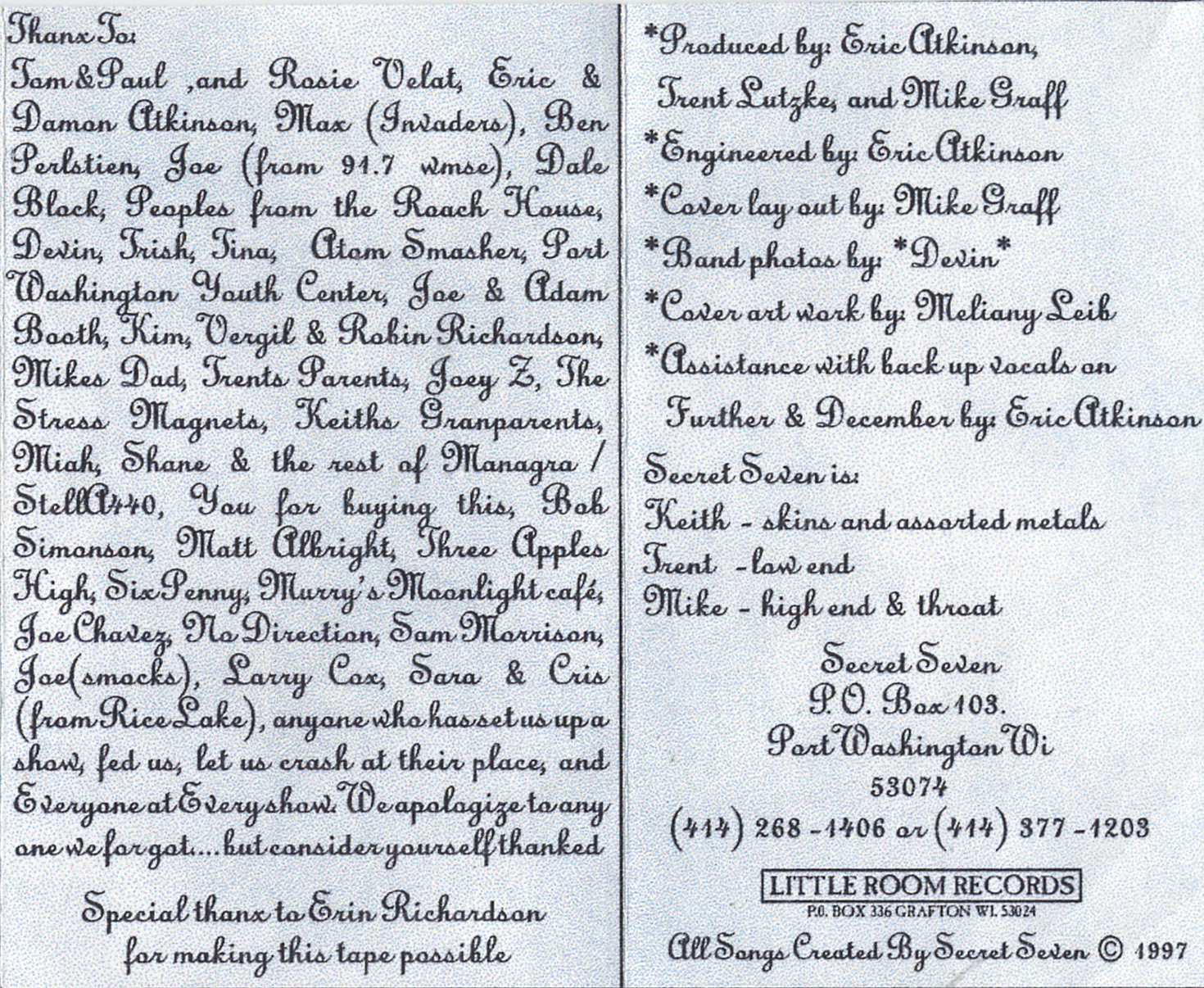 Produced: Eric Atkinson, Lutzke, Graff | Engineered: Atkinson | Cover layout: Graff | Photo: Devin (aka: Chase Hawk) | Cover art: Meliany Leib | Exra vox on December & Further: Atkinson