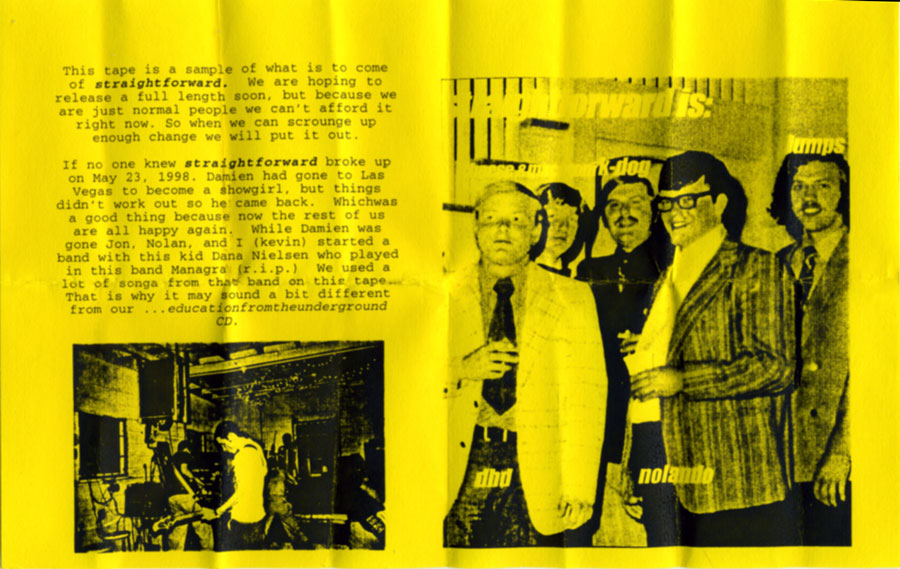This one-sided tape was recorded by Joe Wong and his 4-track at The Bremen House. It was finished in Dec. of 1998.